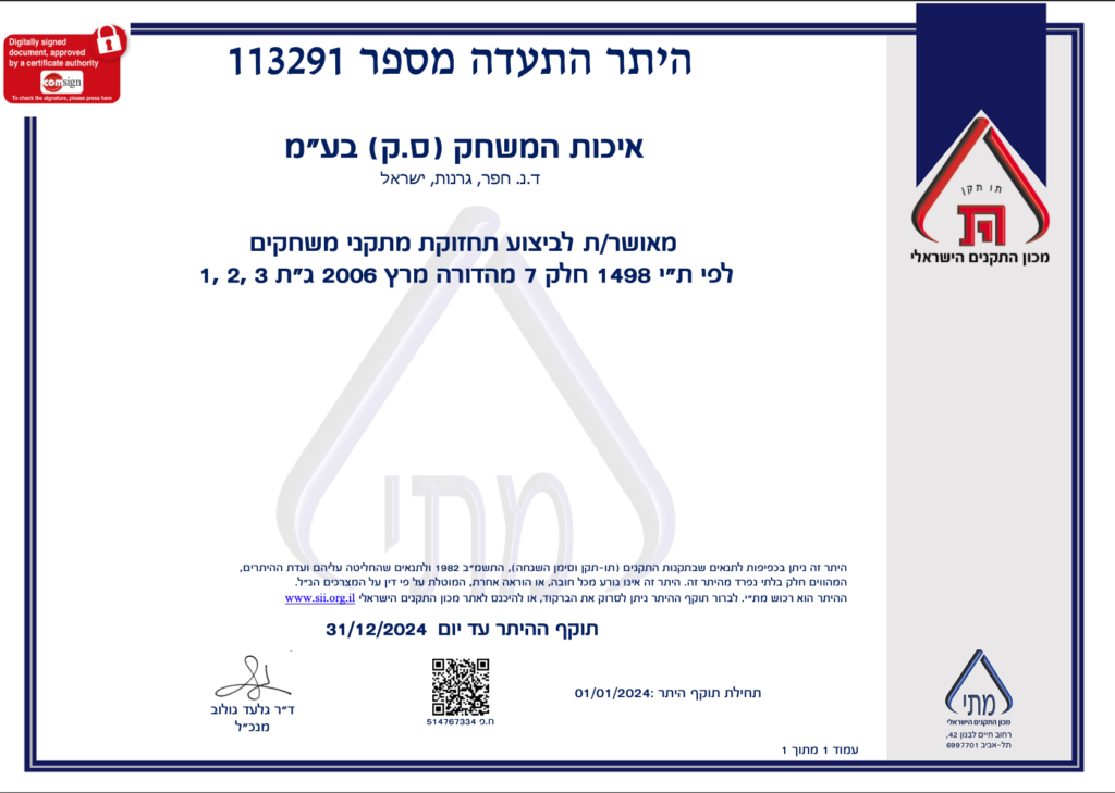 מתקני הכושר הינם בהתאם לדרישות מכון התקנים הישראלי (ת”י 1497).