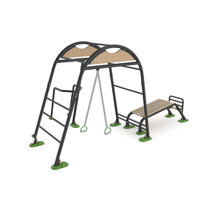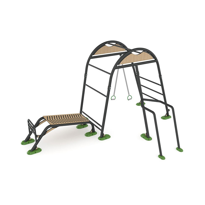 מתקן כושר משולב – מתח, רצועות trx, מיטת כפיפות בטן, ושכיבות סמיכה. לחיזוק שרירי החזה, הכתפיים, יד קדמית ואחורית, בטן, פנים ירך, רגליים.